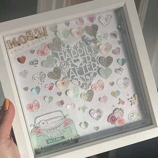 I found the process very relaxing. I did need to concentrate and really think about how I wanted the end design to look. I very pleased overall and will be putting them up around the house. I prefer the one with a bride and groom on. I just think it looks a bit neater and clean cut. I did need a big work space though as had quite a few cards to work with. It was nice to reflect on the lovely day even if this was 2 years later. There was a lot of loss and calamity leading up to our wedding but it was strange that all of those problems melted away when thinking about it. See the final results below. Just goes to show from chaos can come beauty.